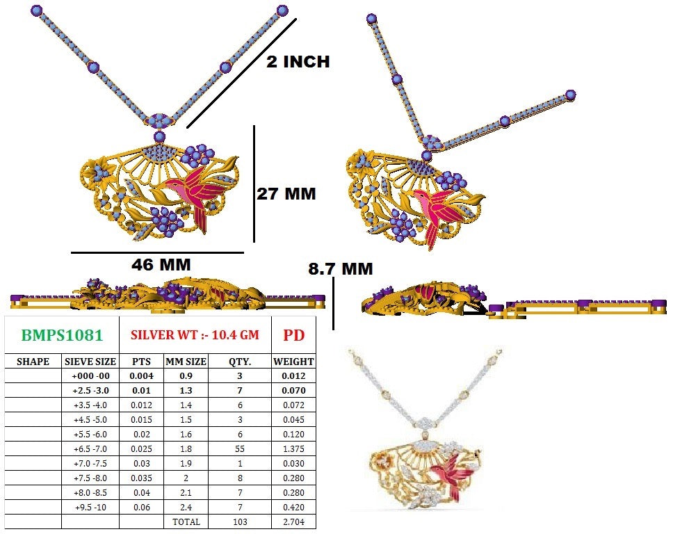 CAD Review: We kindly request all customers to check the CAD designs thoroughly before placing the order to ensure the bird proportions and stone placements meet your expectations.