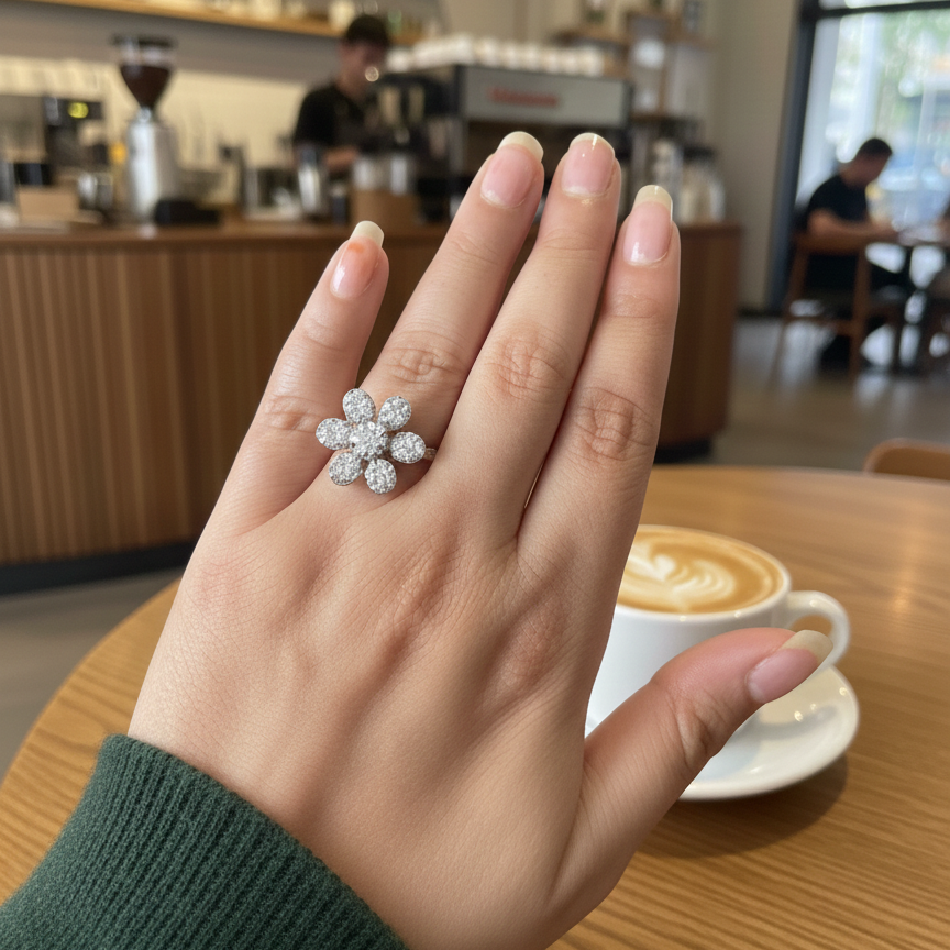 Embrace timeless elegance with our Flower Radiance Ring. Crafted in sterling silver 925 with a lustrous gold-like finish, its simple yet beautiful design captures the essence of a blooming love. The silver polish accentuates the floral motif, creating a piece that seamlessly blends simplicity with sophistication—an ideal accessory for any occasion.
