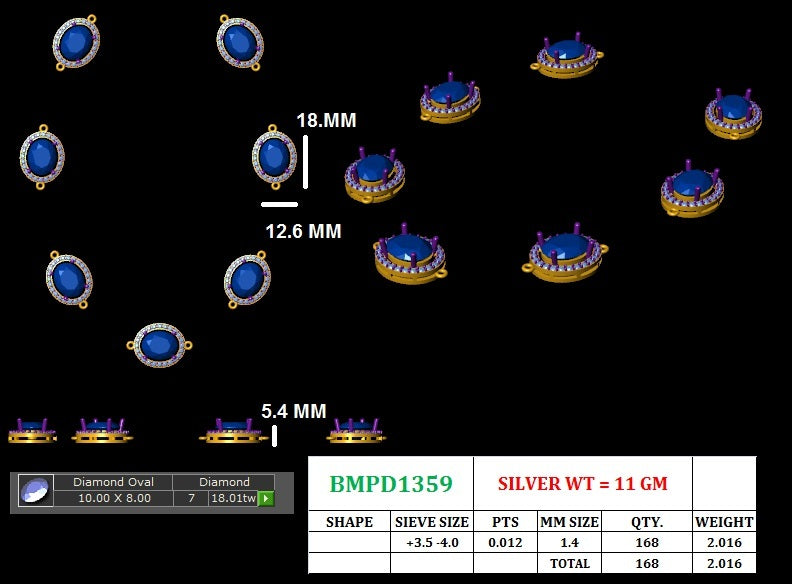 View the CAD images to appreciate the precise design and quality of the Oval Halo Trio Necklace before ordering.