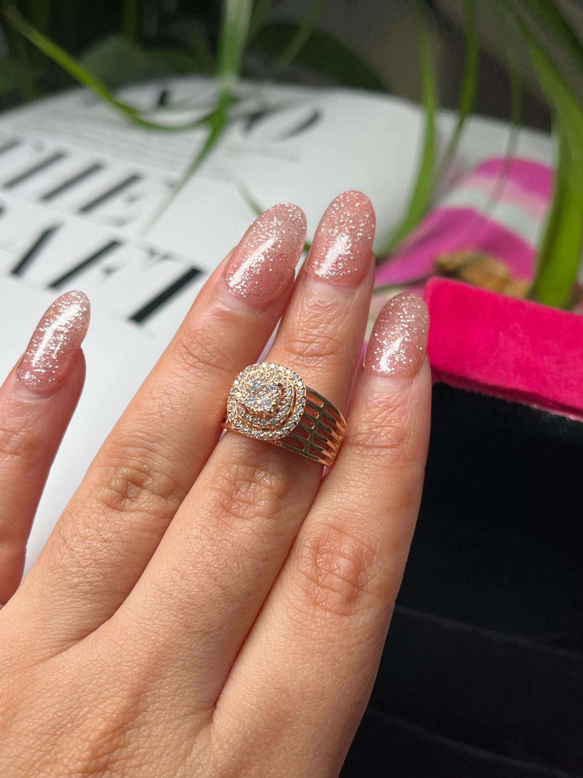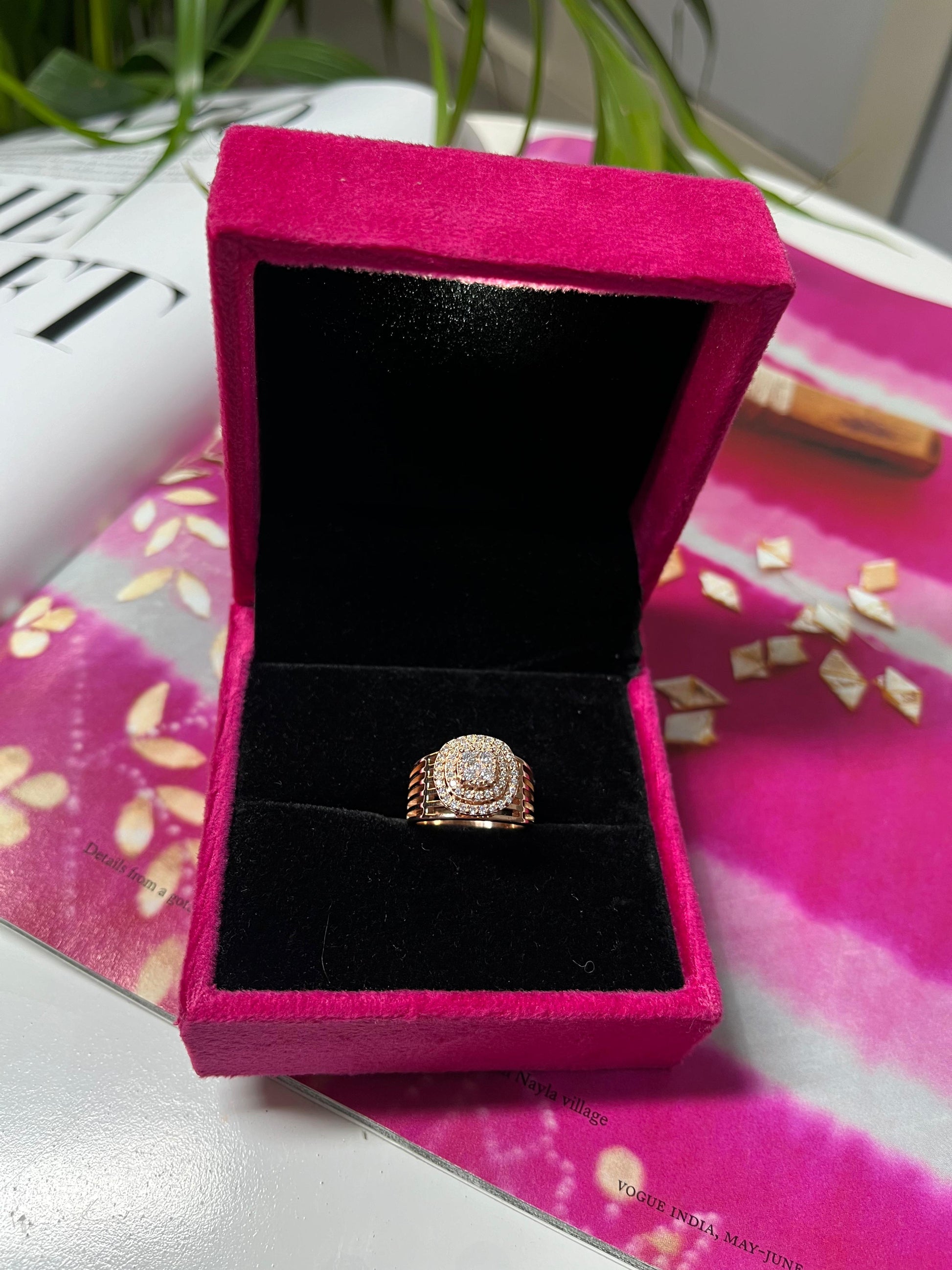 The Halo Cushion Diamond Ring exudes elegance with its simple yet beautiful design. Crafted from sterling silver 925, it mimics the opulence of real gold. The rose gold polish adds a touch of warmth, while the central white stone, surrounded by a halo, creates a stunning engagement ring aesthetic.