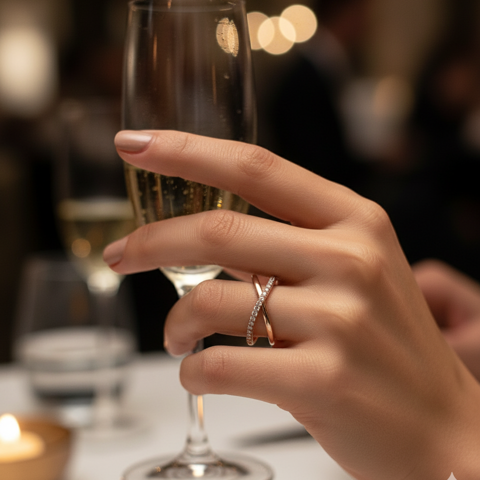 The Infinity Studded Ring captivates with its stunning design, fashioned from sterling silver 925 for the radiance of genuine gold. Its gleaming gold polish adds to its allure, while a petite white stone lends a touch of sophistication. With its timeless elegance, it evokes the sentiment of a wedding celebration.