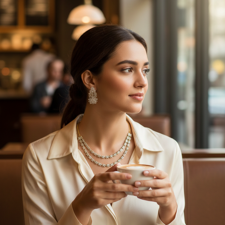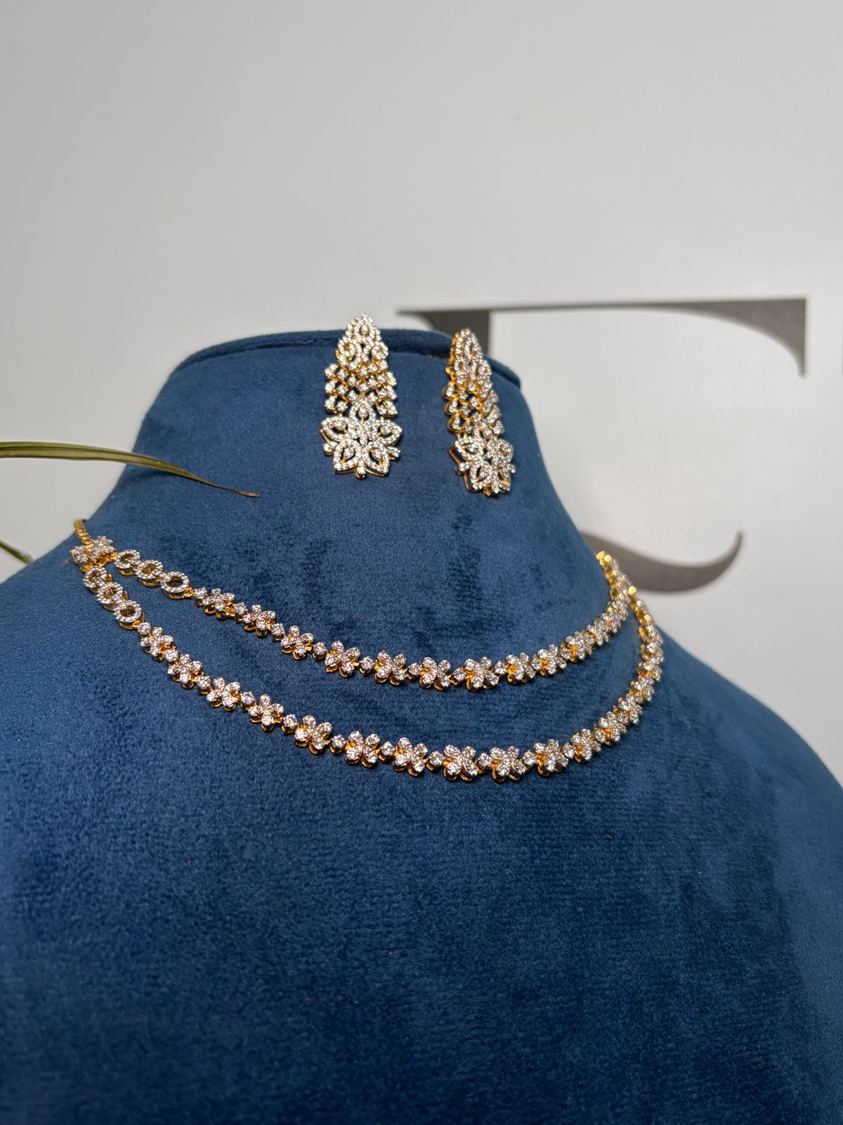 The Flora Aura Necklace Set is an ethereal collection inspired by the delicate beauty of blooming flowers. This set features a meticulously crafted necklace and matching earrings, designed to drape with elegance and radiate a brilliant, natural glow. It is the perfect choice for brides or for adding a touch of floral sophistication to formal evening wear.