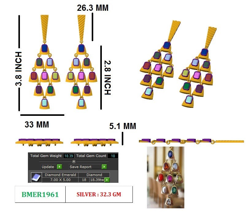 Experience the stunning beauty of these Navratna Earrings by eti house of silver. Made with exquisite craftsmanship and featuring the traditional nine gemstones, these earrings are a must-have for any jewelry collection. Elevate your style and showcase your taste with these amazing earrings