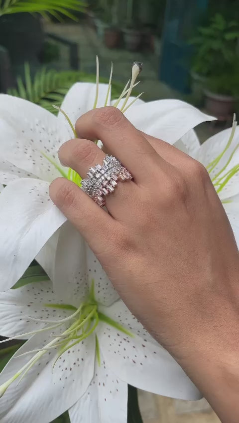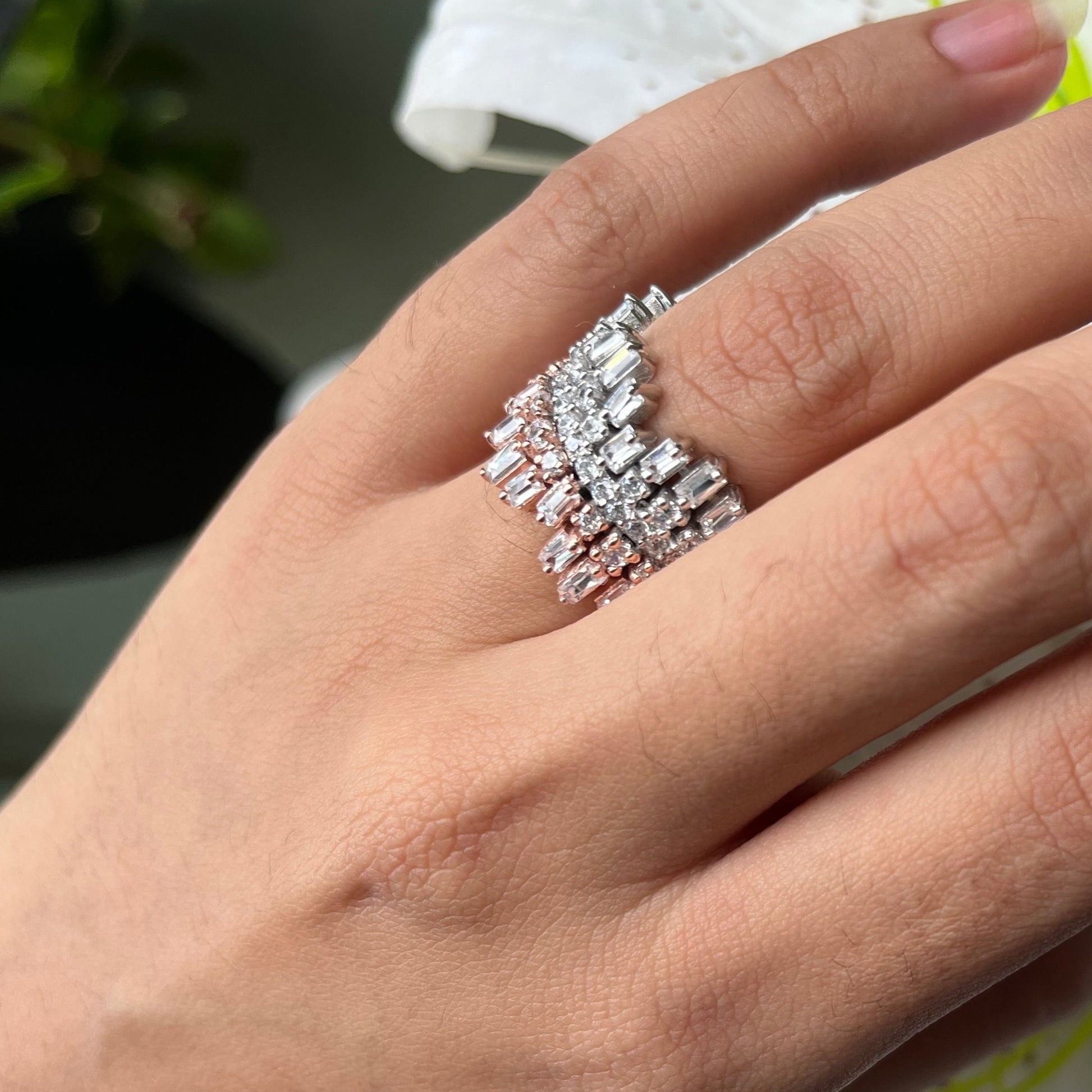 This stunning Ring is perfect for any special occasion. Crafted with a combination of rosegold and silver polish, the band features a sterling silver 925 for a dazzling wedding wear look. Perfect for gifting or treating yourself!